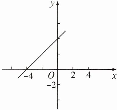 4. 如图,一次函数 $y = kx + b$ 与 $x$ 轴的交点为 $(-4,0)$,当 $y > 0$ 时,$x$ 的取值范围是(