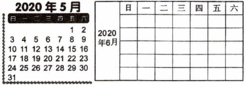 四、请根据2020年5月份的月历卡制作出2020年6月份的月历卡。