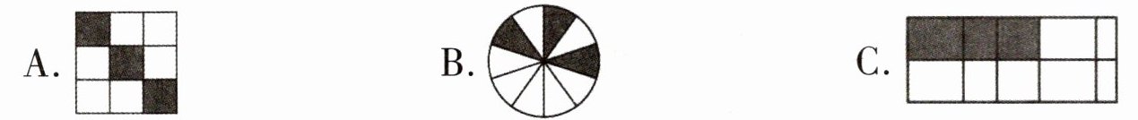 2. 下面各图中的涂色部分能用0.3表示的是( )。