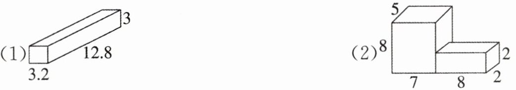 (1)体积:3.2×12.8×3=122.88(m³) 表面积:(12.8×3.2+12.8×3+3.2×3)×2=177.92(m²)