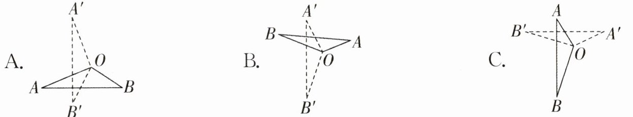 10. 三角形AOB绕点O逆时针旋转$90^{\circ }$后得到的图形是( )。