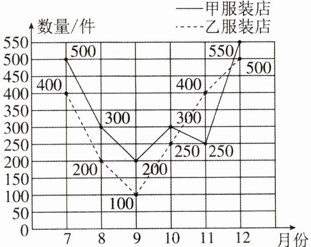 (3)11月份,乙服装店的销售量比甲服装店多( )件。