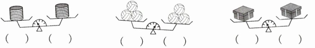 11. 看一看哪边有次品(次品稍轻),在下面画“√”。
