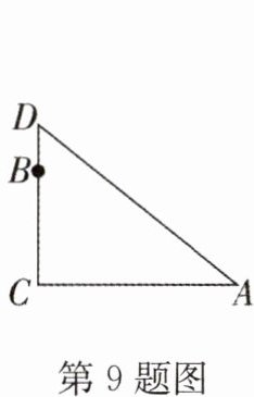 9. 在一棵树的 5 米高 B 处有两个猴子为抢吃池塘边水果,一只猴子爬下树跑到 A 处(离树 10 米)的池塘边,另一只爬到树顶 D 后直接跃到 A 处,距离以直线计算,如果两只猴子所经过的距离相等,则这棵树高______米。