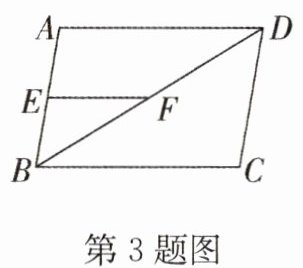 3. 如图,平行四边形$ABCD$中,$E是边AB$的中点,$F是对角线BD$的中点,若$EF = 3$,则$BC = $(