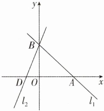 13. 如图,在平面直角坐标系$xOy$中,直线$l_{1}:y= -x+3与过点(-1,1)的直线l_{2}交于y轴上的点B$,点$A$,$D分别为直线l_{1}$,$l_{2}与x$轴的交点.