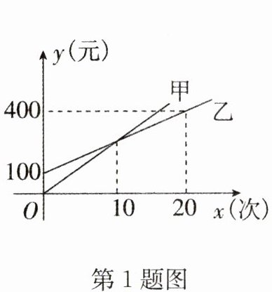 当$x=10$时,$y_{甲}=y_{乙}$,即$20×10 = 10k_{2}+100$,解得$k_{2}=10$,故$y_{乙}=10x + 100$。