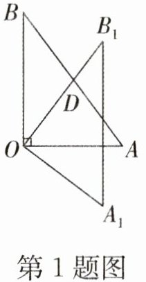 1. 已知,如图,在$\triangle AOB$中$,\angle AOB = 90^{\circ},AO = 3\mathrm{cm},BO = 4\mathrm{cm}. $将$\triangle AOB$绕顶点O按顺时针方向旋转到$\triangle A_1OB_1$处,此时线段$OB_1$与AB的交点D恰好为AB的中点,则线段BD的长是 (