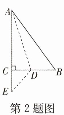 2. 如图所示,有一块直角三角形纸片$ABC$,$\angle ACB = 90^{\circ}$,$AC = 12\mathrm{cm}$,$BC = 9\mathrm{cm}$. 将斜边$AB翻折使点B落在直角边AC的延长线上的点E$处,折痕为$AD$,则$CD$的长为 (