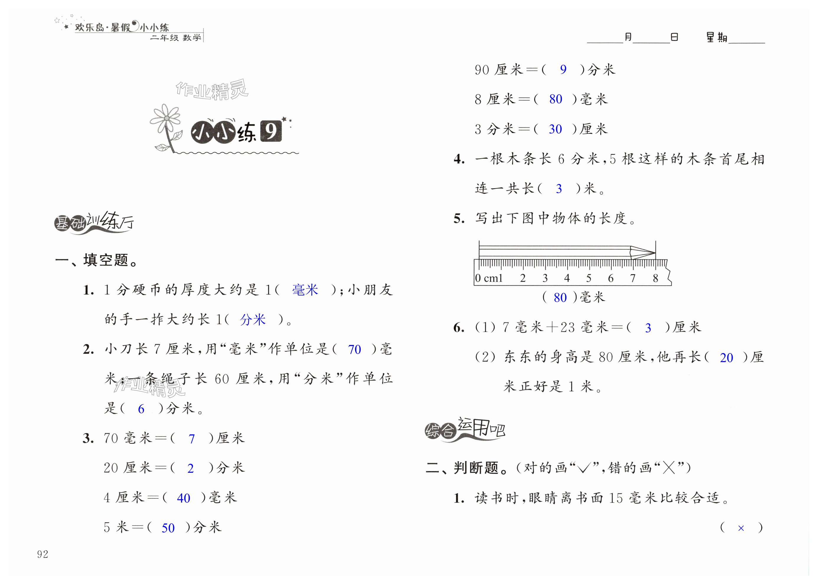注:目前有些书本章节名称可能整理的还不是很完善,但都是按照顺序排列的,请同学们按照顺序仔细查找。练习册 2025年欢乐岛暑假小小练二年级合订本 答案主要是用来给同学们做完题方便对答案用的,请勿直接抄袭。