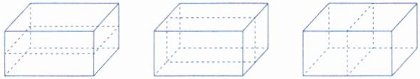2. (新趋势·思维探究)一个长方体,用下面不同的三种方法分别将其切成两个完全一样的长方体(如下图)。切后两个长方体的表面积分别比原来增加了$40cm^{2}$、$30cm^{2}$、$24cm^{2}$。要求原来长方体的表面积是多少,下面列式正确的是(