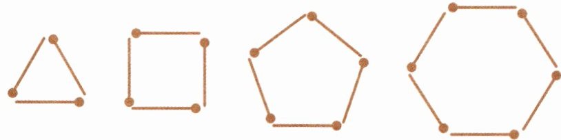 3. (新趋势·说理分析)一种小棒每盒有60根。如图,用3根、4根、5根、6根小棒分别能搭成一个等边三角形、一个正方形、一个正五边形和一个正六边形。小明用一盒小棒搭了一些正方形和正六边形(各图形之间无公共边),剩下了5根小棒。小红认为小明一定有图形搭错了。你同意小红的观点吗?请说明理由。