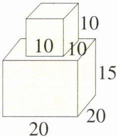 3.一个容器由一个内空棱长10cm的正方体和一个内空长20cm、宽20cm、高15cm的长方体组合而成(如图)。正放时(长方体在下面,放平)水深10cm,倒放时(正方体在下面,放平)水最深处是多少厘米?