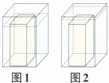 (2)假设放入长方体铁块后,完全浸没且水未溢出,如图2。求出新的水面高度,如果新的水面高度小于容器的高度,说明水未溢出,假设成立。
