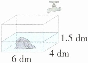 变式训练1 在下图的玻璃鱼缸中放入一块高1.5dm、体积为$6dm^3$的假山石。如果水管以每分钟$10dm^3$的流量向鱼缸内注水,至少需要多长时间才能把假山石刚好淹没?