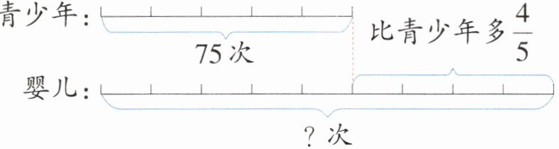 婴儿每分钟心跳的次数比青少年多$\frac { 4 } { 5 }$,多的部分是(