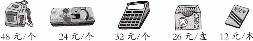 (2) 问题:买$10$个书包和$15$个笔记本,一共需要多少钱?(答案不唯一)