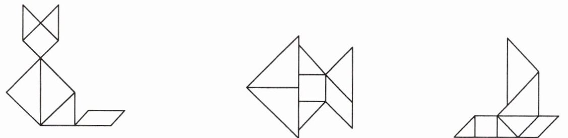 1. 下面是用七巧板拼出的图形,想一想它们像什么?