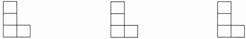 2. 如图是用小正方形组成的L形图,请你用三种不同的方法分别在下图中添加一个小正方形使它成为一个轴对称图形,并画出它的一条对称轴。