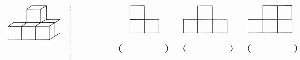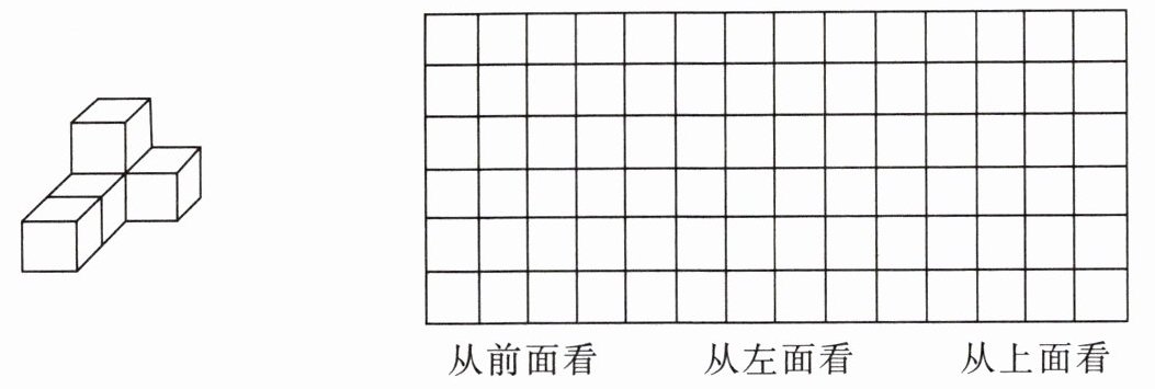 3. 班上举行跳绳比赛,由你制作领奖台,你有4个相同的正方体可用,你准备怎样摆?把摆成的领奖台从前面、左面和上面看到的形状画出来。