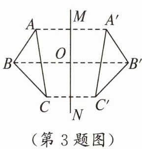 3. 如图,$△ABC与△A'B'C'$关于直线 MN 对称,$BB'$交 MN 于点 O,则下列结论不一定正确的是(