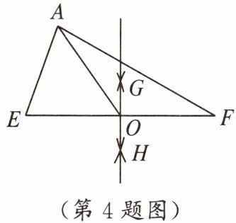 4. 如图,在$△AEF$中,尺规作图如下:分别以点 E、F 为圆心,相同长(大于$\frac {1}{2}EF$的长)为半径作弧,两弧分别相交于 G、H 两点,作直线 GH,交 EF 于点 O,连结 AO,则下列结论正确的是(