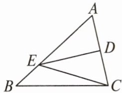 7. 如图,在$△ABC$中,$BC= 8cm$,E 是 AB 上的一点,$△ACE$是轴对称图形,ED 所在直线是它的对称轴. 若$△BCE$的周长为 18 cm,则$AB= $