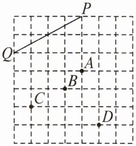 8. 如图,在方格图中,线段 $PQ$ 的两个端点都在格点上,方格图中另有 $A$、$B$、$C$、$D$ 四个格点,下面四个结论中,正确的是(