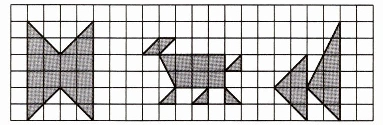 1. 比较下面图形的面积,在面积最大的图形下面画“$◯$”。