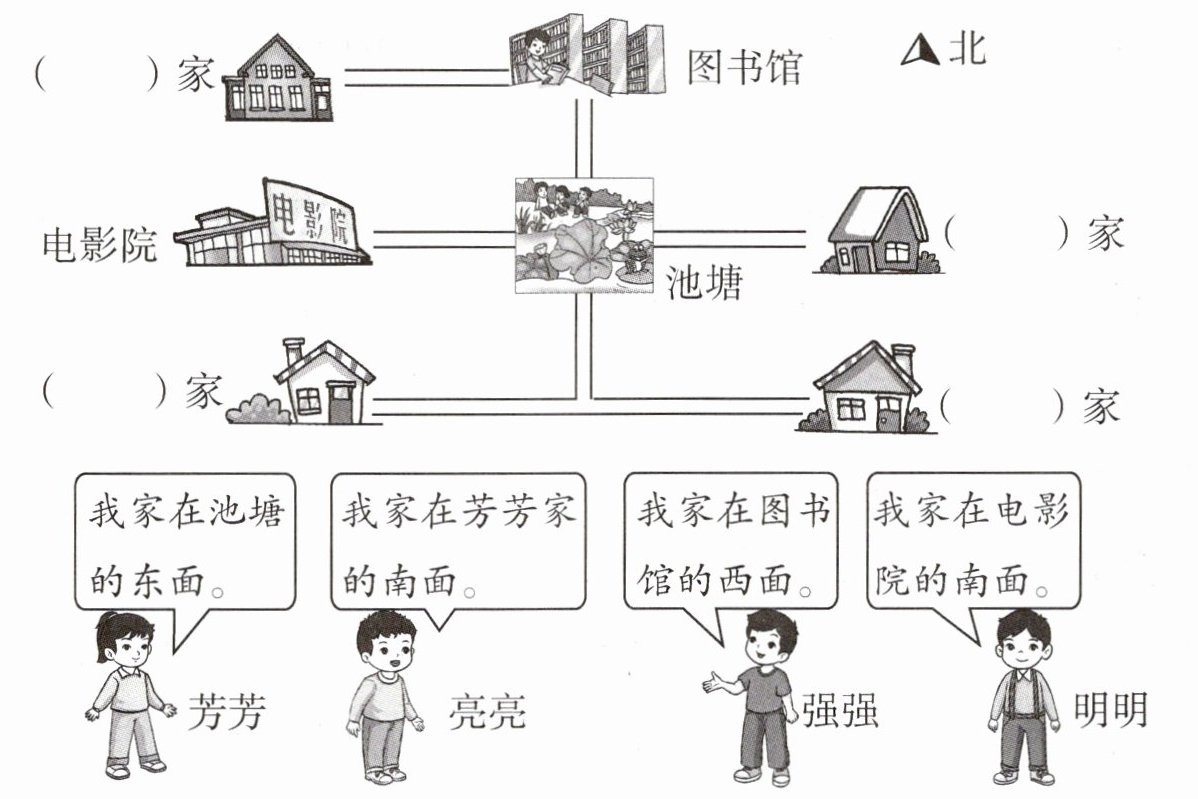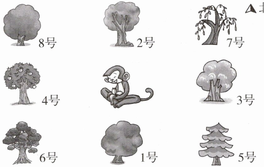 (4)小猴子在小猫的南方,小猫在( )号树后。