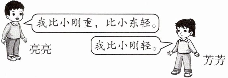 小东 41.2 千克,亮亮 39.8 千克,小刚 36.4 千克,芳芳 34.5 千克。