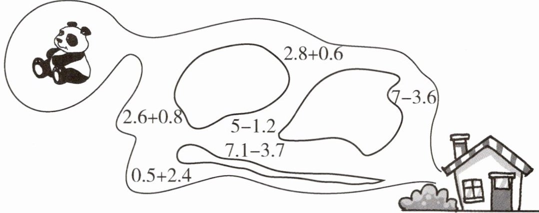 二、只有走得数是 3.4 的路口,熊猫才能回家,请你送它回家。你能找到几条路?