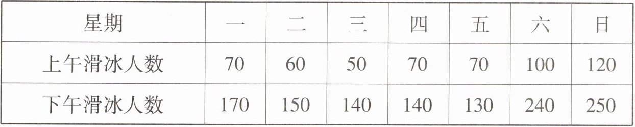 我准备周末上午去。因为从表格数据看,上周周末下午滑冰人数比上午多很多,上午相对人少一些,滑冰时不会太拥挤,能有更好的体验。(答案不唯一,合理即可)