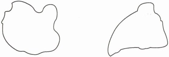 如图所示,有两块大小差不多的、由一块铁皮切割而成的不规则铁皮板。如果用工具测量它们的面积有困难,那么采用什么办法可以比较出它们面积的大小呢?