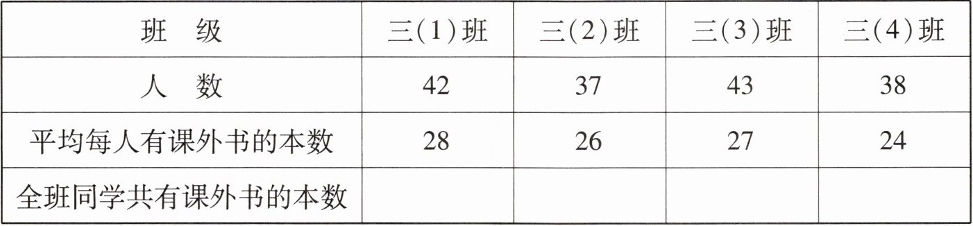 |班级|三(1)班|三(2)班|三(3)班|三(4)班|