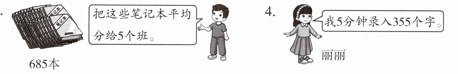 4. $ 5 □ 5 ÷ 5 $,要使商的中间有 0,$ □ $中可以填数字( )。
