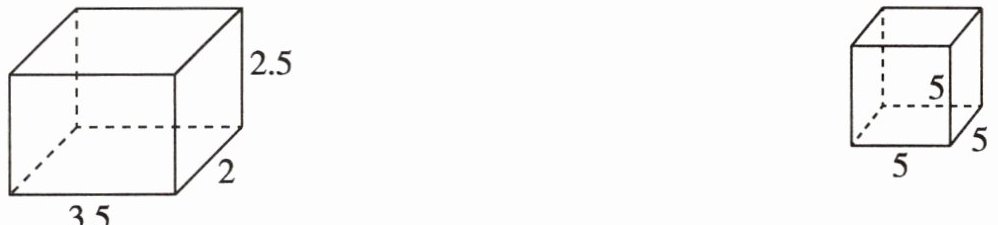 答案:第一个图形(长方体)表面积是$41.5cm^2$,体积是$17.5cm^3$;第二个图形(正方体)表面积是$150cm^2$,体积是$125cm^3$。