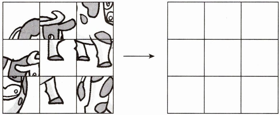 六、请你用左图在方格纸中拼出