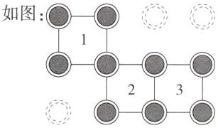 有 12 枚纽扣,排成下列图形。每枚纽扣所在的位置都是小正方形的一个顶点,这样的小正方形共有 6 个。如何移走其中 3 枚纽扣,使得图形中只剩下 3 个小正方形?