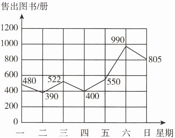 (1)售出图书最多的一天比最少的一天多( )册。