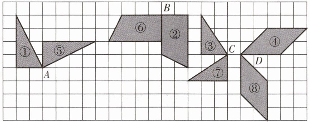 (4)图④平行四边形绕$D$点按( )时针方向旋转了( )度,得到图⑧。
