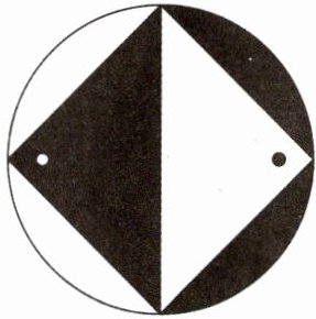 想办法从白色和黑色的三角形中各剪下相同形状和大小的1块,相互交换位置贴上去,使这个图形看上去像两条鱼。应该怎么做呢?