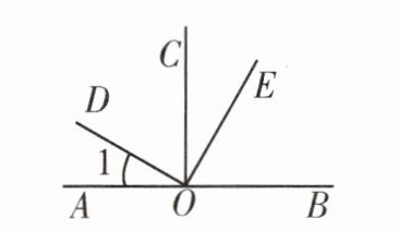 2. 如下左图,$OC⊥AB$,$OD⊥OE$,图中与$∠1$互余的角有