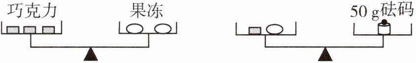 6. 如图所示的两架天平都保持平衡,且每块巧克力的质量相等,每个果冻的质量也相等,则一块巧克力的质量是