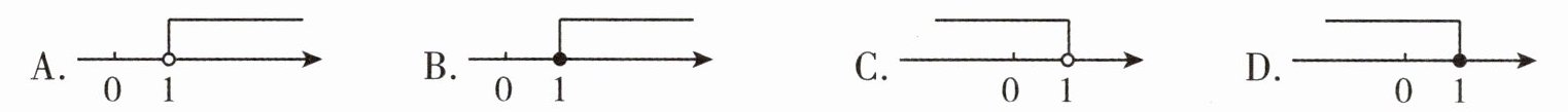 2. 不等式 $ x < 1 $ 的解集在数轴上表示正确的是 (