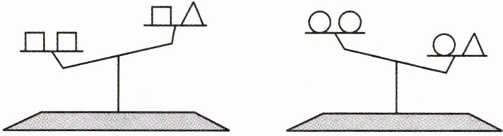 1. 设“○”“△”“□”表示三种不同的物体,现用天平称了两次,情况如图所示. 那么“○”“△”“□”的质量从大到小的顺序排列为 (