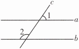 1. 如图,两直线$a$,$b被第三条直线c$所截,若$\angle 1 = 55^{\circ}$,$\angle 2 = 125^{\circ}$,则直线$a$,$b$的位置关系是