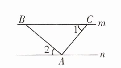 1. 如下左图,直线$m// n$,点$A在直线n$上,点$B在直线m$上,连接$AB$,过点$A作AC\perp AB$,交直线$m于点C$,若$\angle 1 = 50^{\circ}$,则$\angle 2$的度数为 (