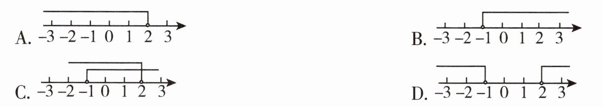 2. 不等式组$\left\{\begin{array}{l} x+1>0,\\ x-2<0\end{array} \right. $的解集在数轴上表示正确的是 (