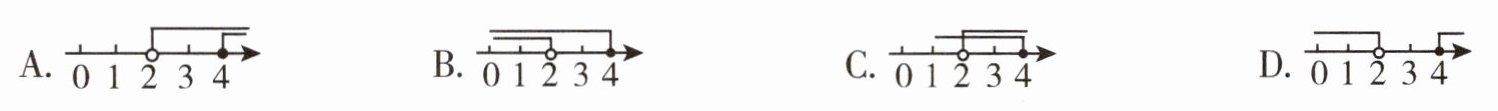 4. 不等式组 $\begin{cases}x \leq 4, \\ x > 2\end{cases} $ 的解集在数轴上表示正确的是 (